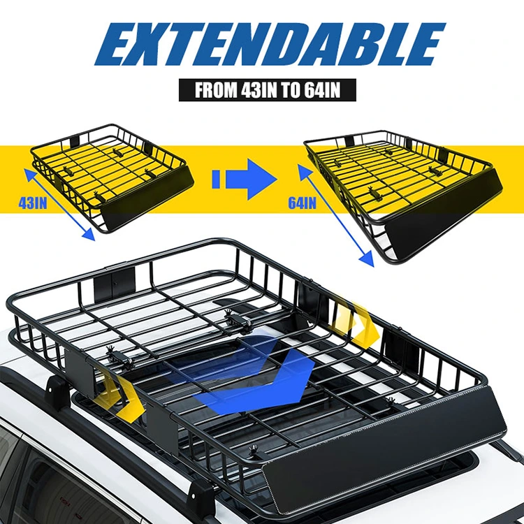 Thiết kế có thể mở rộng: Giỏ đựng đồ trên nóc này có thiết kế có thể mở rộng thông minh—kích thước tiêu chuẩn (43" x 39" x 6") dành cho ô tô nhỏ gọn và có thể mở rộng lên đến 64" cho các loại xe lớn hơn, tối đa hóa không gian chở hàng. Dạng thu gọn của nó giúp bạn dễ dàng tháo rời, vận chuyển và cất giữ khi không sử dụng. Nó phù hợp cho nhu cầu đi lại và lưu trữ linh hoạt.