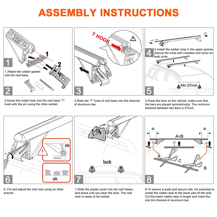 Các thanh ngang giá nóc này được lắp đặt dễ dàng: Bao gồm cờ lê lục giác để thiết lập trong 10 phút; hướng dẫn sử dụng với hình ảnh minh họa từng bước.